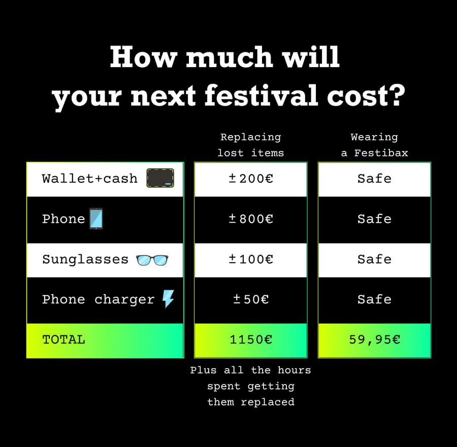 The ultimate Festibax® festival bag - Club edition - in a unique design and available in 3 colours! This festival-approved belt bag, with detachable strap!